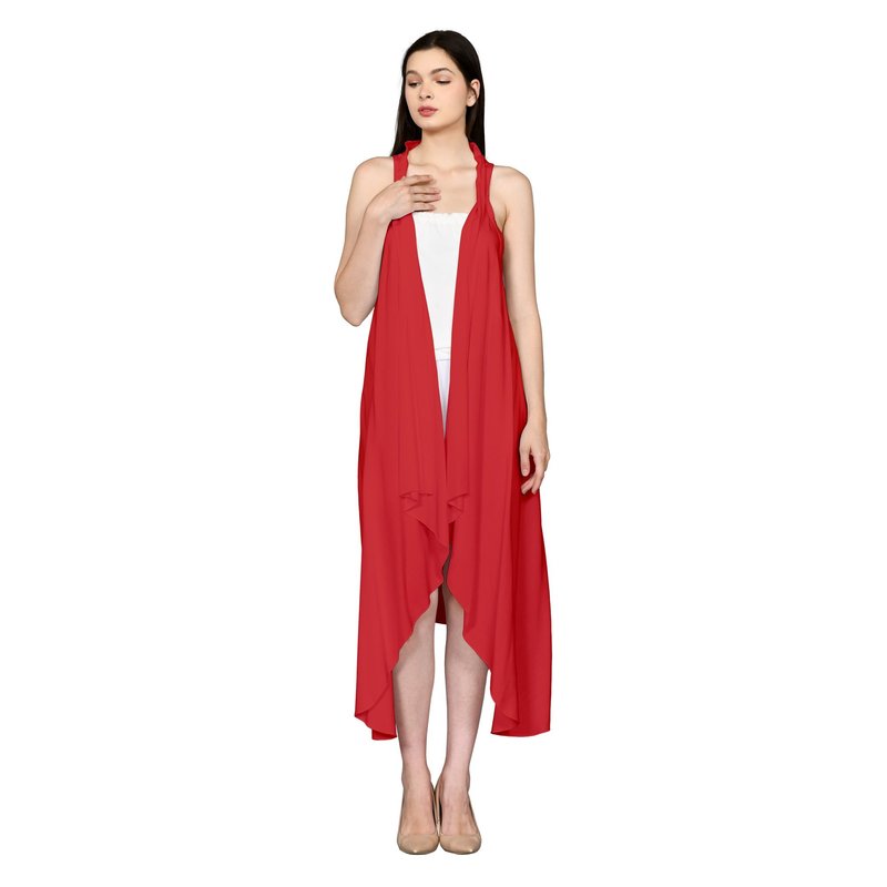 Morgan long cardigan red in premium 100% rayon.