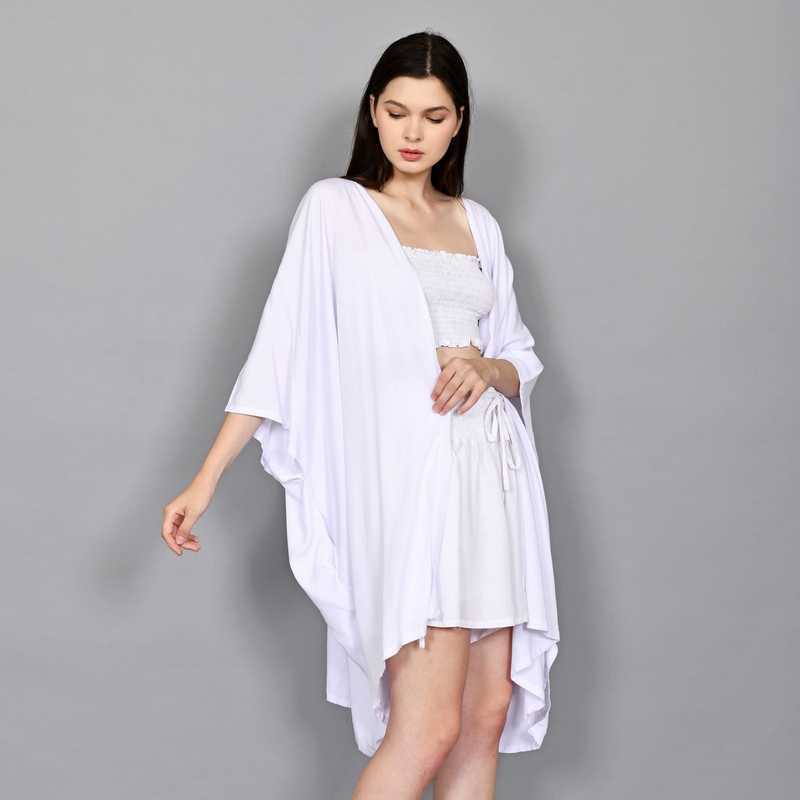 Juliana short cardigan white in premium 100% rayon.