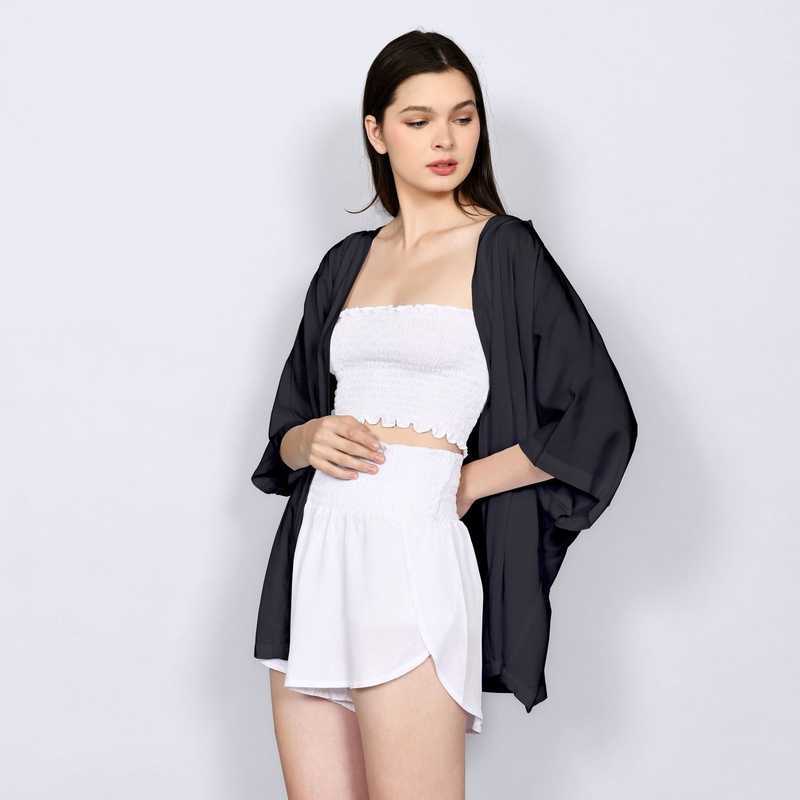 Lila short cardigan black in premium 100% rayon.
