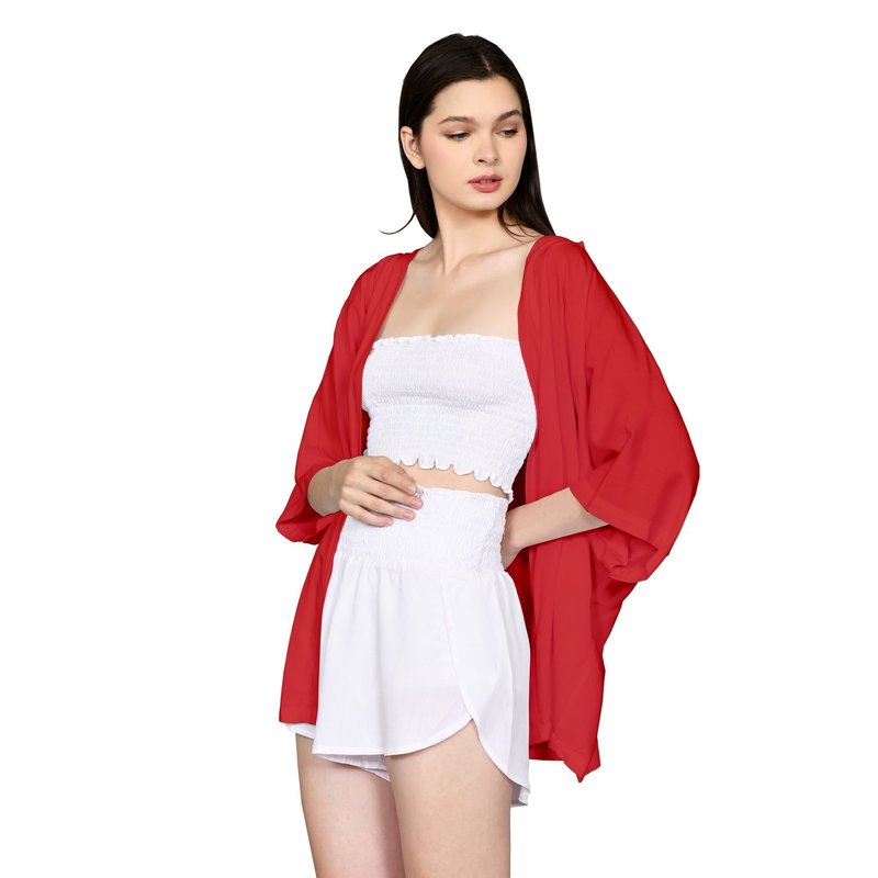 Lila short cardigan red in premium 100% rayon.
