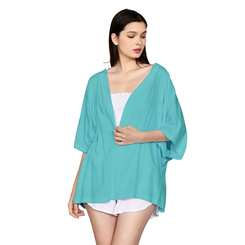 Lila short cardigan turquoise in premium 100% rayon.